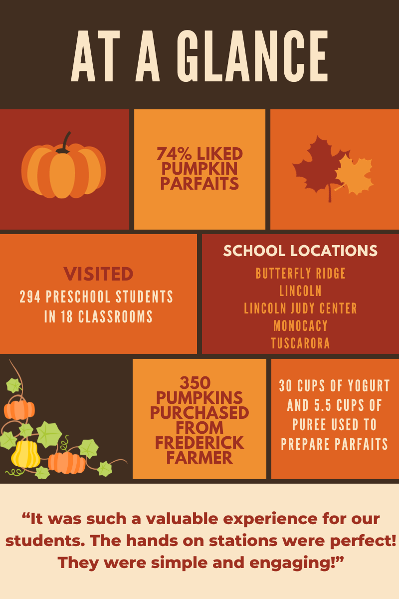 Farm to School programs play a crucial role in connecting students with their local food while providing a hands-on approach to learning. These immersive experiences aim to enhance children’s understanding of where their food comes from, promote healthy eating habits, and engage them in the seasonal wonders of agriculture. One of the Farm to School highlights during October and Farm to School month was the exploration of pumpkins with preschool students at Frederick County Public Schools.